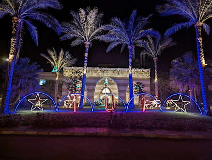 Einfahrt mit Weihnachtsbeleuchtung