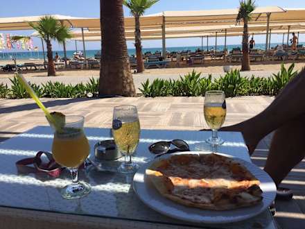 Chill-Out Bar mit Blick auf den Strand