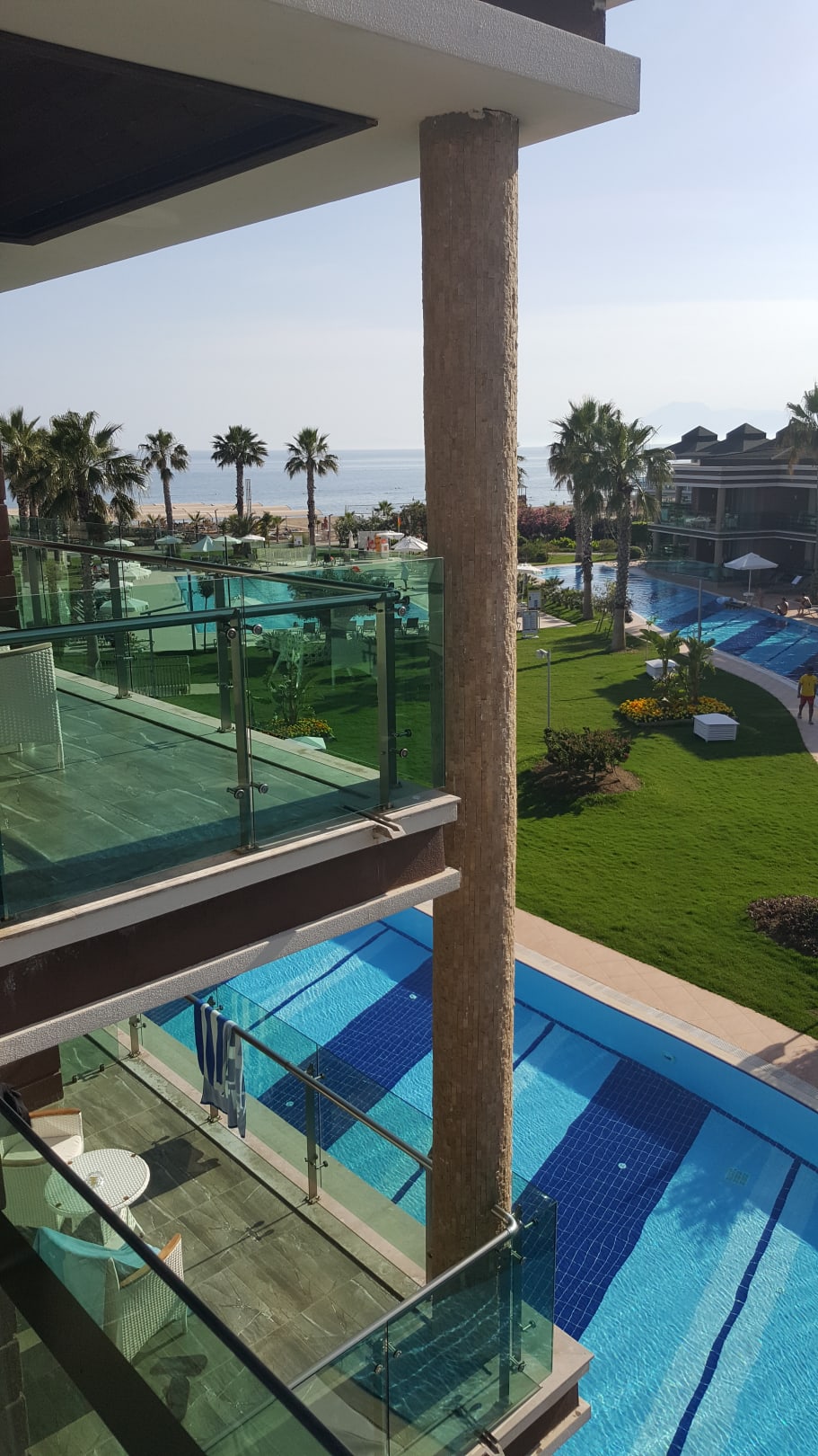 Blick vom Lagunenfamilienzimmer bis zum Strand