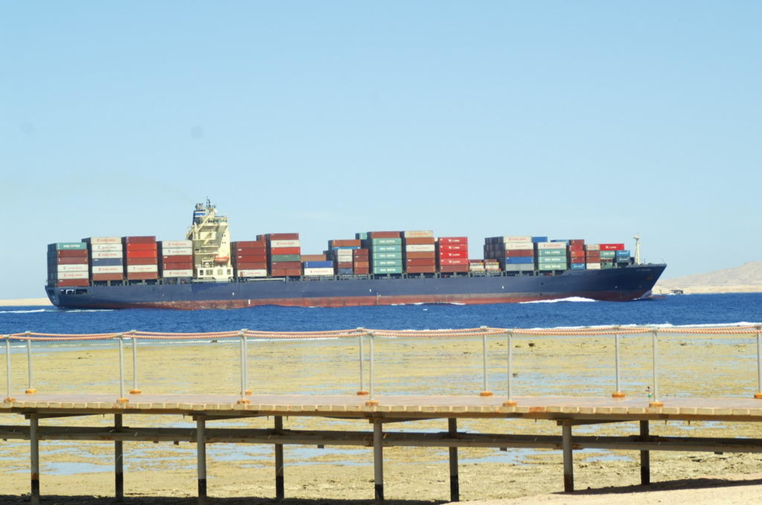 schiff auf dem weg zum suez kanal