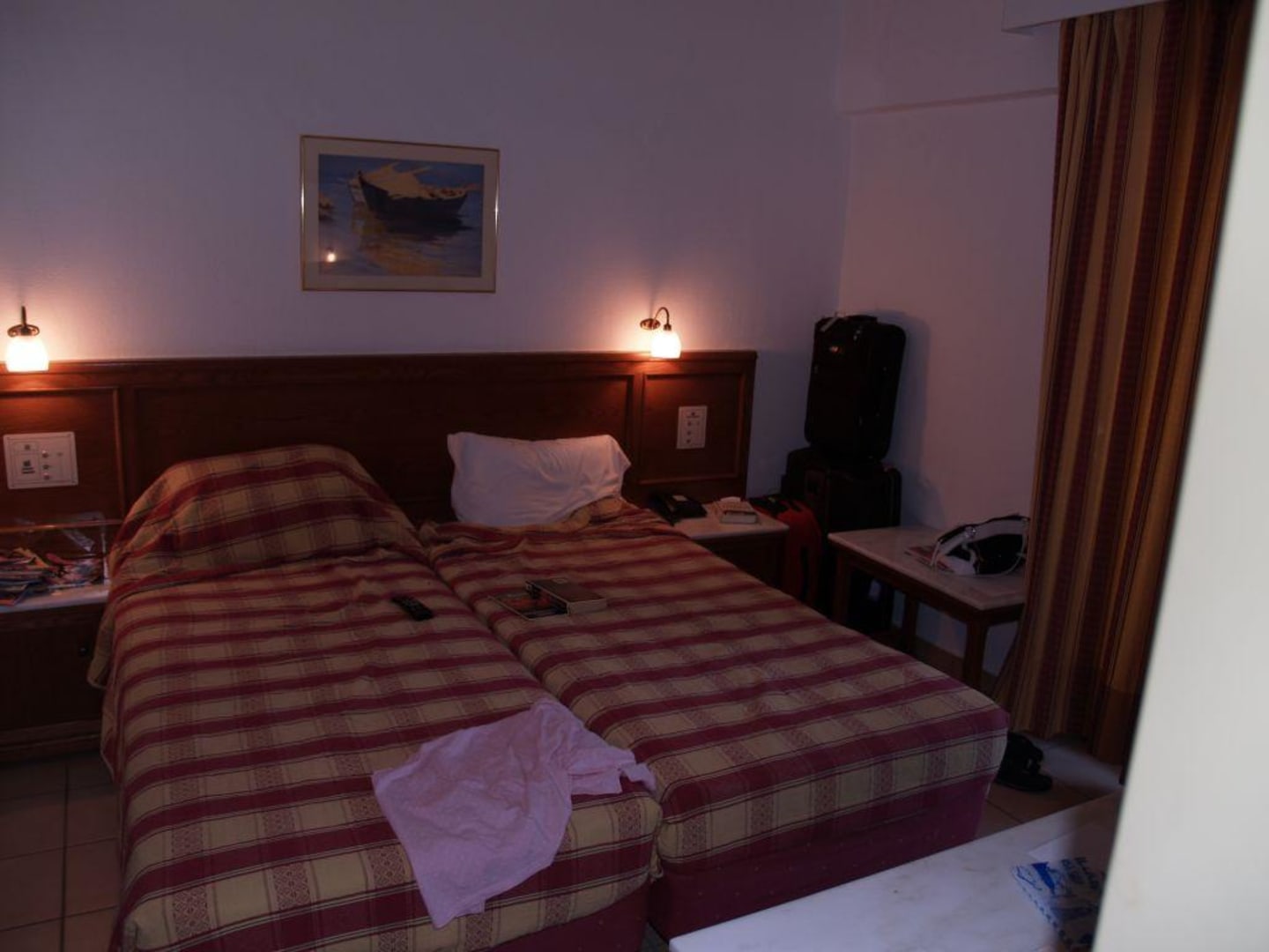 kamer heeft beperkte ruimte om het bed.