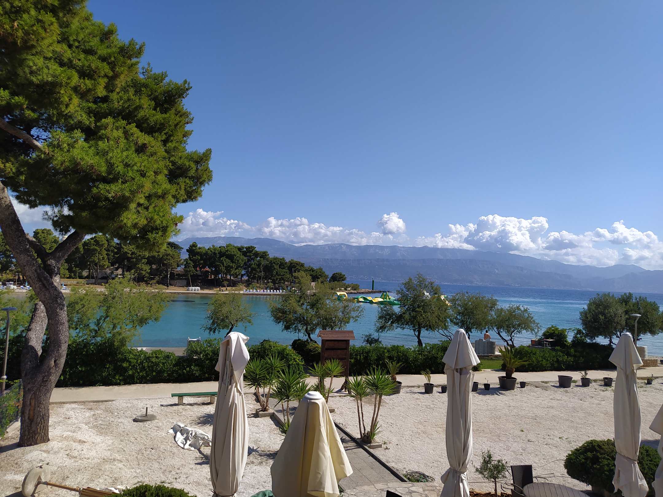 Aussicht von Restaurantterrasse auf die Badebucht
