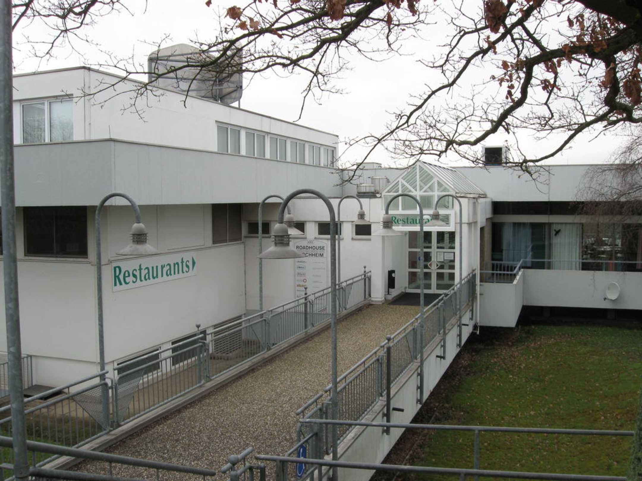 Roadhouse Kirchheim: Zugang zum Hauptgebäude, in dem sich u.a. die Restaurants befinden