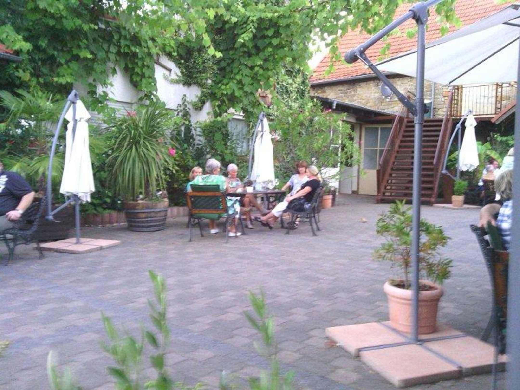 Innenhof vor dem Eingang zum Restaurant!Der Innenhof war immer voll. Natürlich hatten wir das nötige Glück mit richtig gutem Wetter. Wir waren fast ständig draußen. Es gab sehr viele Weine kostenlos zum Probieren. Die Inhaber waren spontan zu jedem Gespräch bereit!