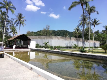 Vergammeltes Wasserbecken nahe der Rezeption, hinter dem Zaun befindet sich eine Baustelle (während unseres Aufenthalts ohne Lärmbelästigung).