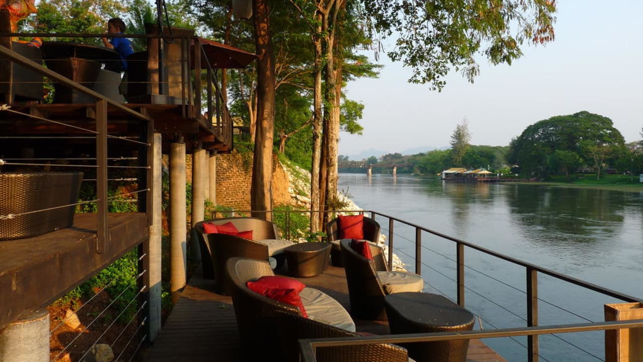 Fluss-Terrasse am River KwaiNur von dort läßt sich ein Blick auf die Brücke am Kwai erhaschen