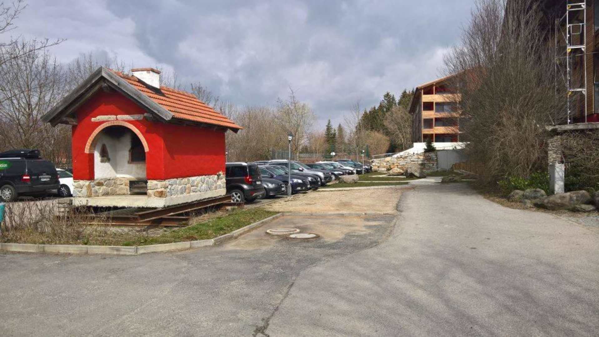 Sehr einladend"Zwischengelagertes" Backhaus, direkt auf dem Parkplatz, obwohl eh viel zu wenig Stellflächen da sind.