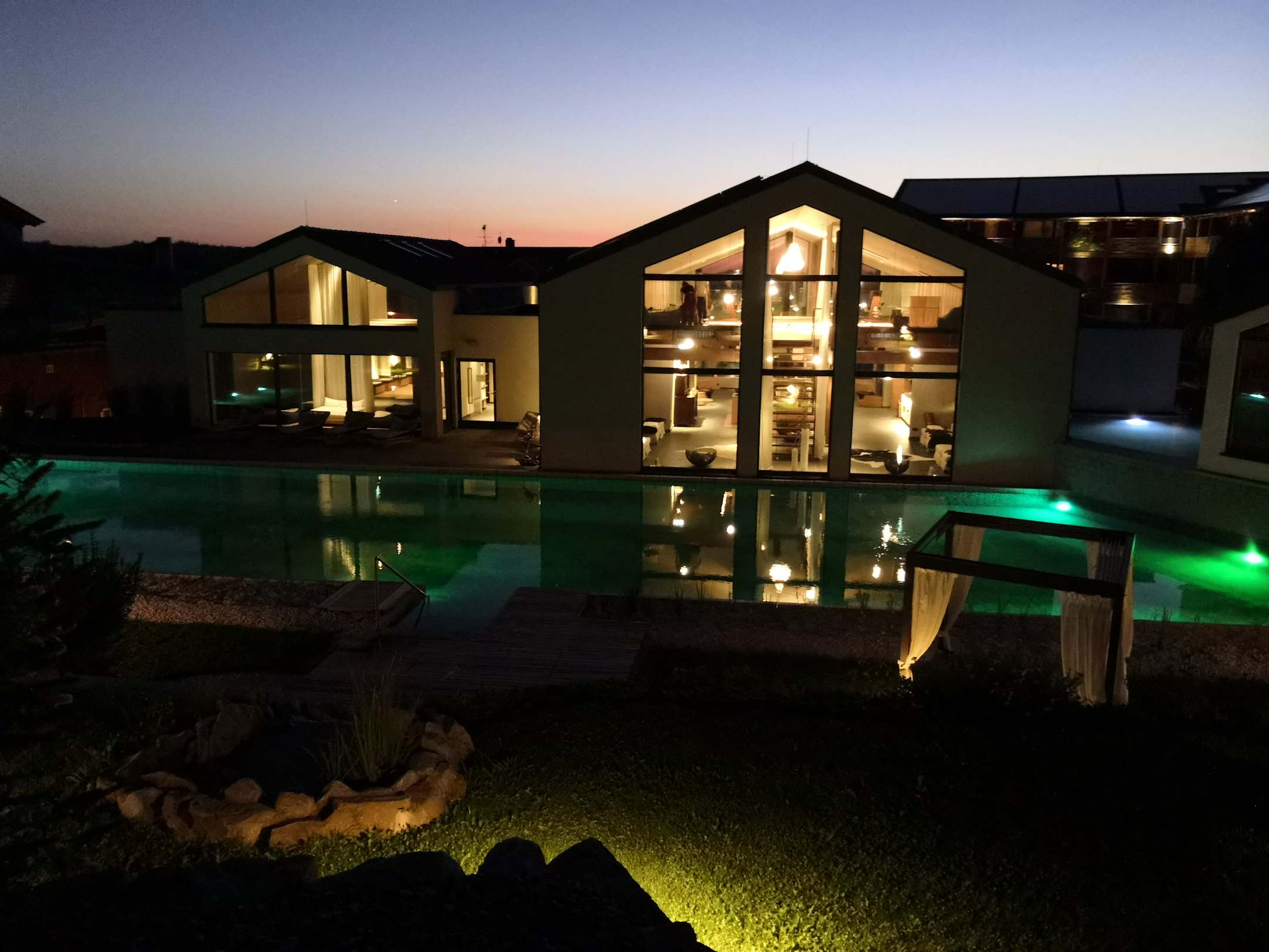 Aussenpool des Erwachsenenbereichs bei Nacht