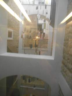 Bild aus dem Fahrstuhl auf das Treppenhaus