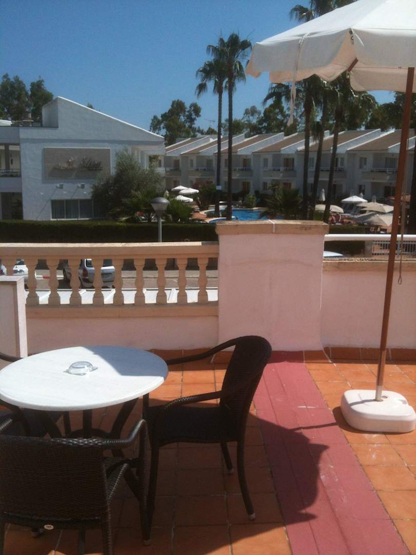 Unsere Terrasse mit Blick auf den Pool