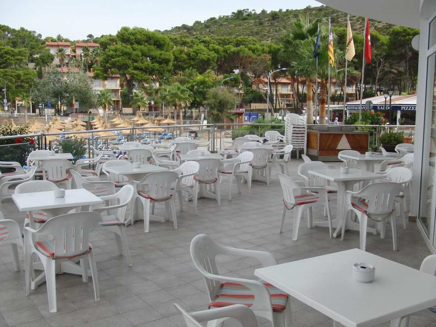 Die Monoblock Plastikstühle im Außenbereich mögen zwar praktisch sein, sind aber für ein Wohlfühlhotel eigentlich ein absolutes ‚No Go’.