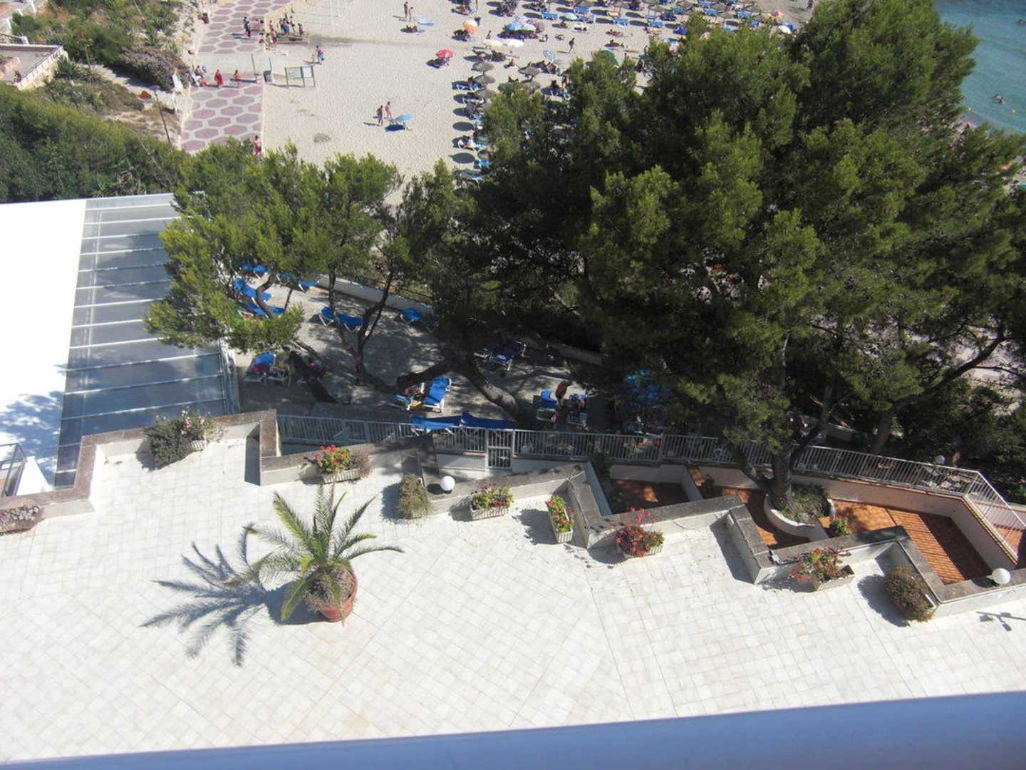 Blick auf eine Terrasse und dem linken Strand