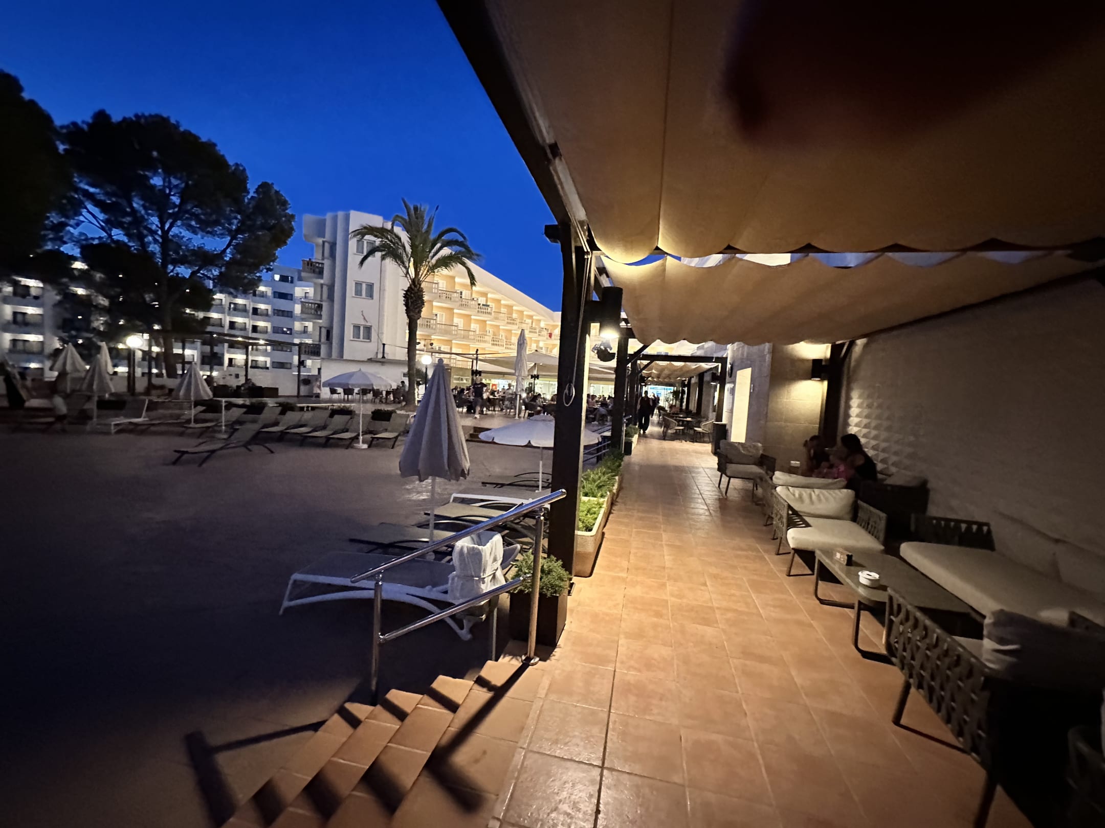 Poolbereich und Außenbereich Bar. Rauchernereich