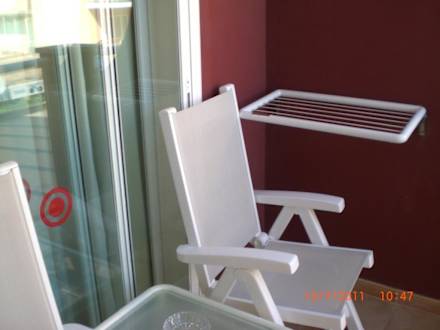 Schöne Hochlehner auf dem Balkon, stabiler Wäschetrockner ist auch vorhanden.