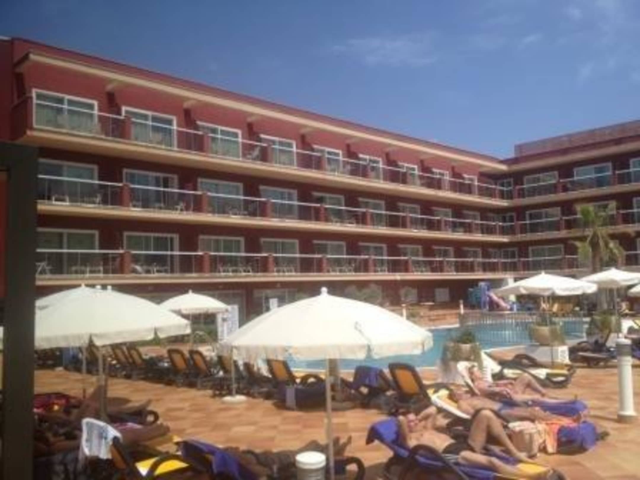 Poolanlage mit Hotel im Hintergrund