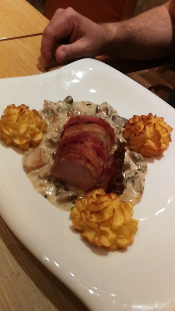 Schweinefilet im Baconmantel, Hauptgericht Menü Halbpension.