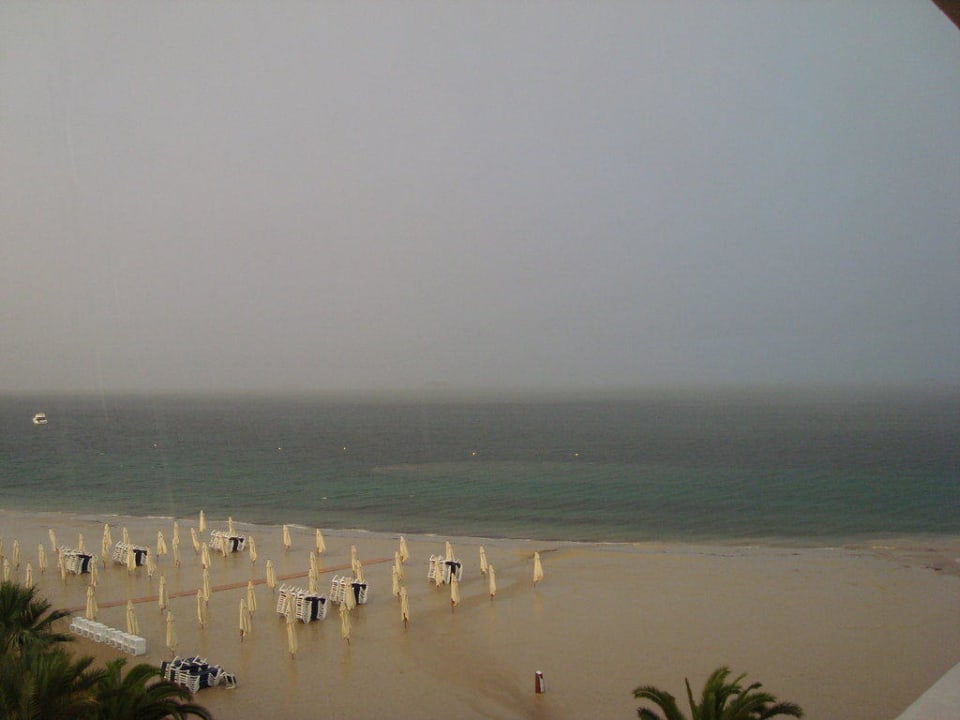 Wolkenbruch über Ibiza, Hotelstrand