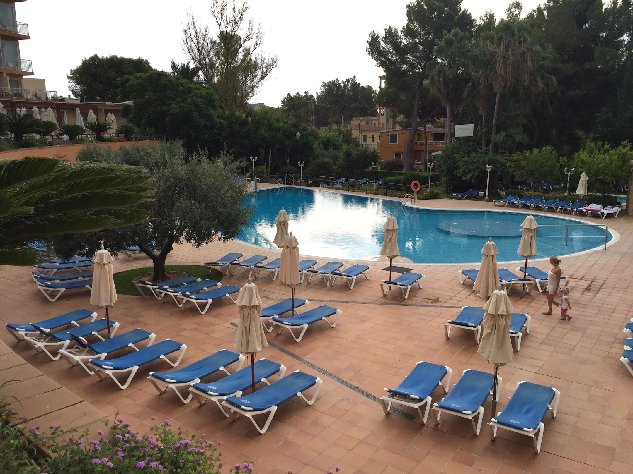 Bewölkter Tag und Morgenstimmung am Pool