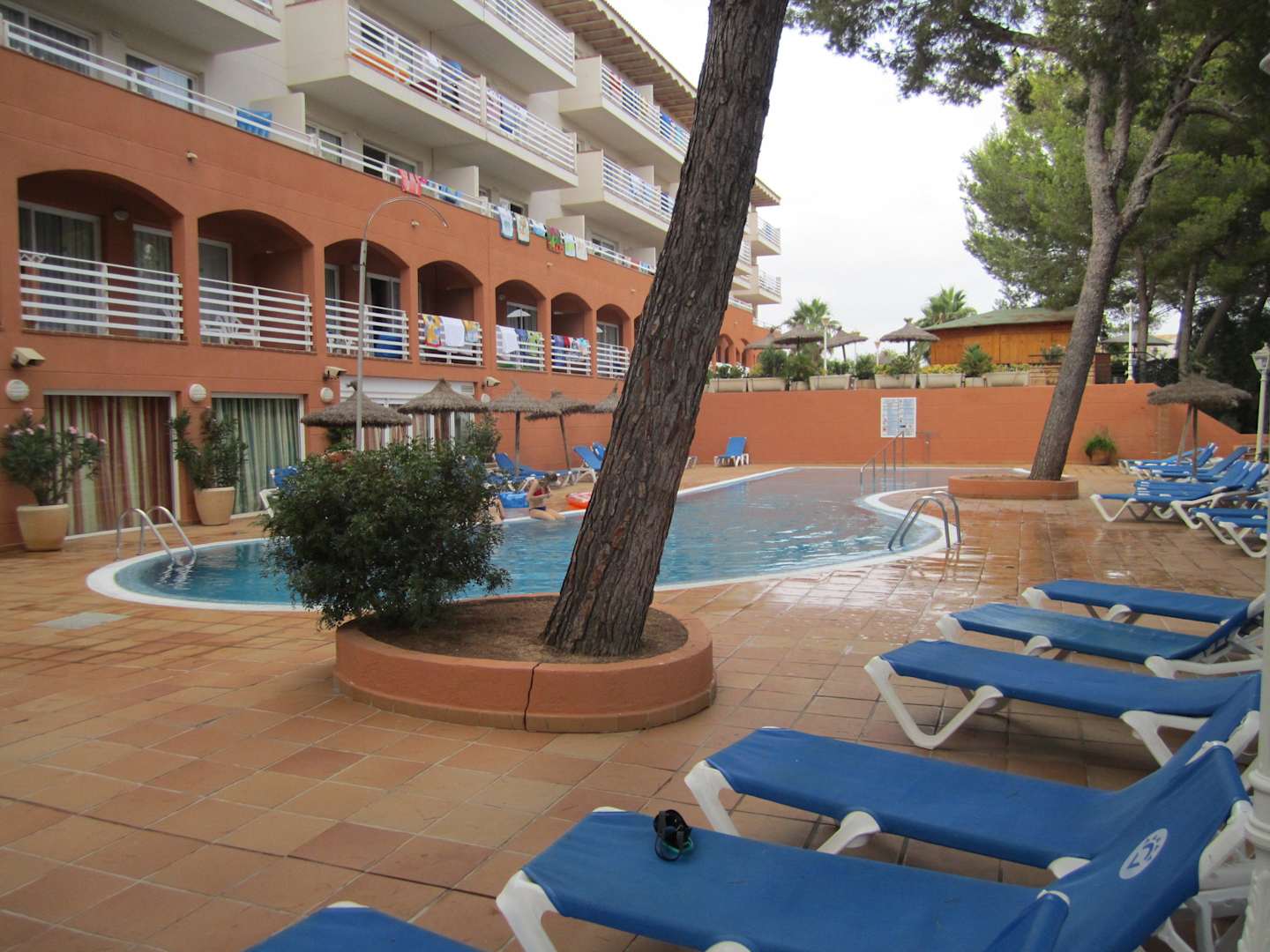 Obere Appartements mit Pool, dahinter Poolbar