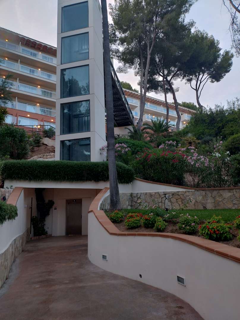 Fahrstuhl zum Nebengebäude für die Apartments