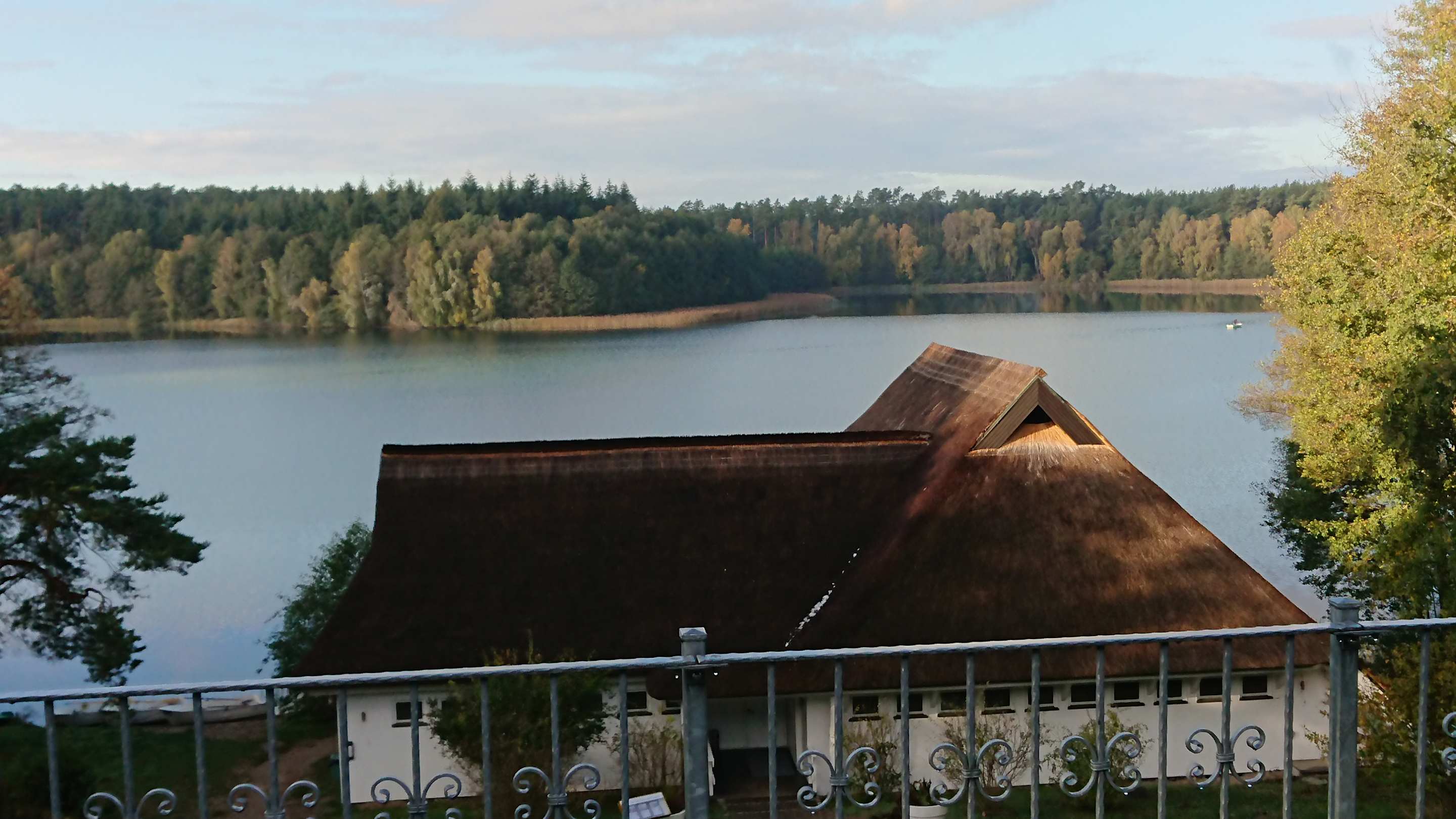 Blick von der Terrasse auf den morgendlichen See