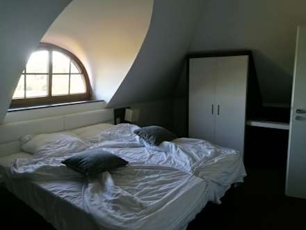 Eins der Schlafzimmer mit Bad im Obergeschoss