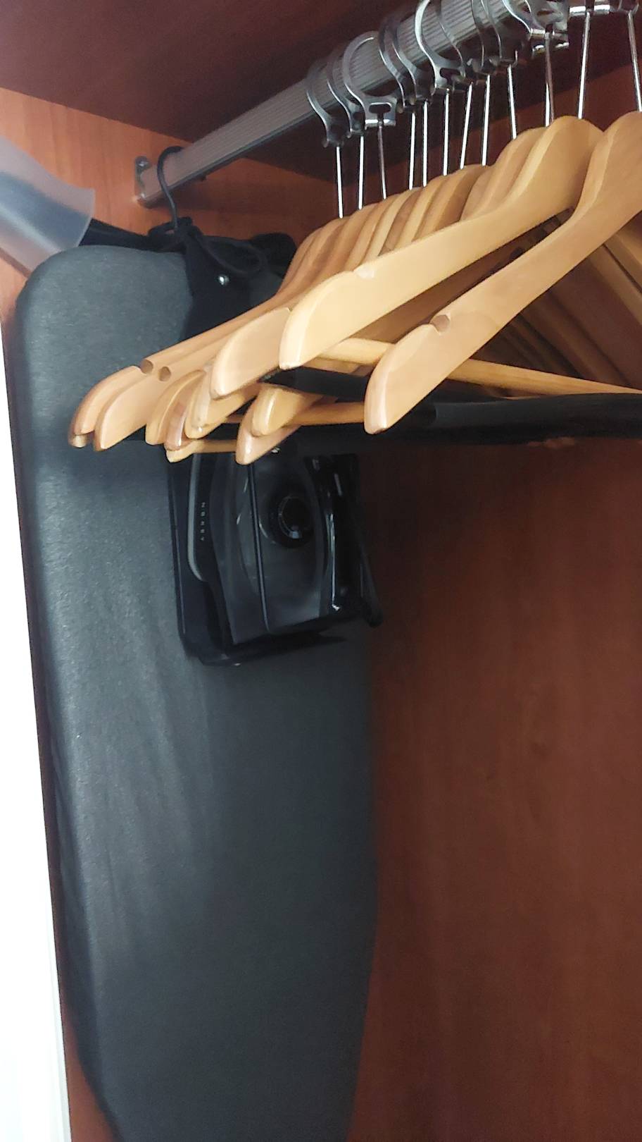 Bügeleisen und Bügelbrett im Kleiderschrank