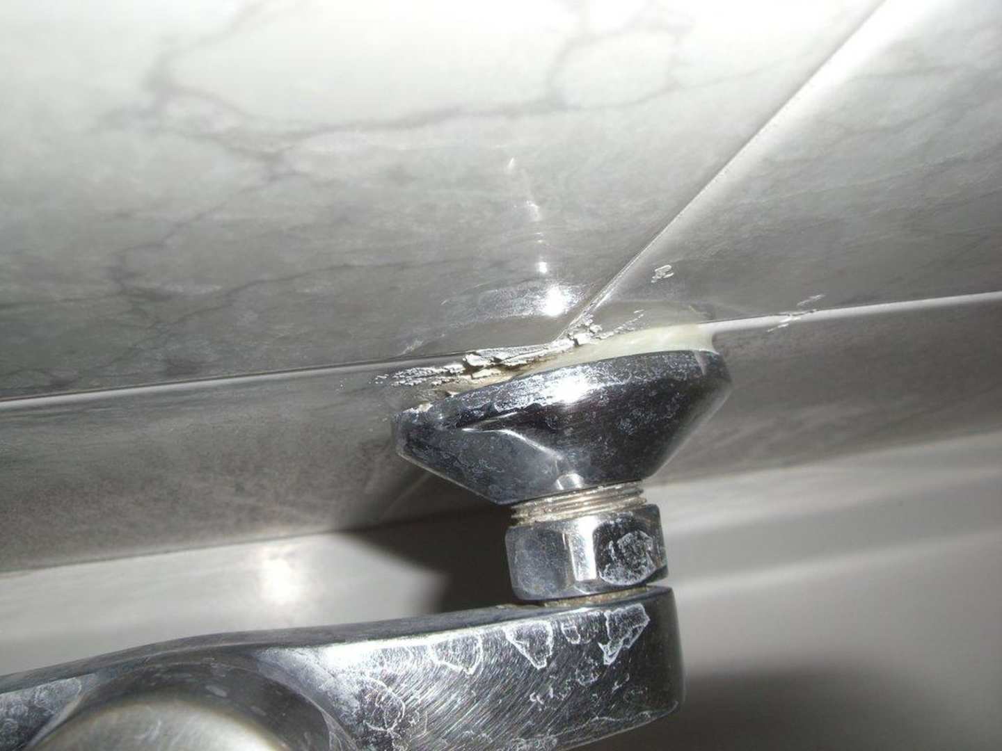 Badarmatur hängt vor lauter Kalk von der Wand