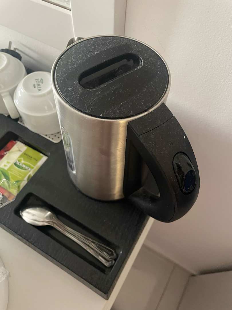 Der Wasserkocher, zusätzlich noch halb voll mit abgestandenem Wasser