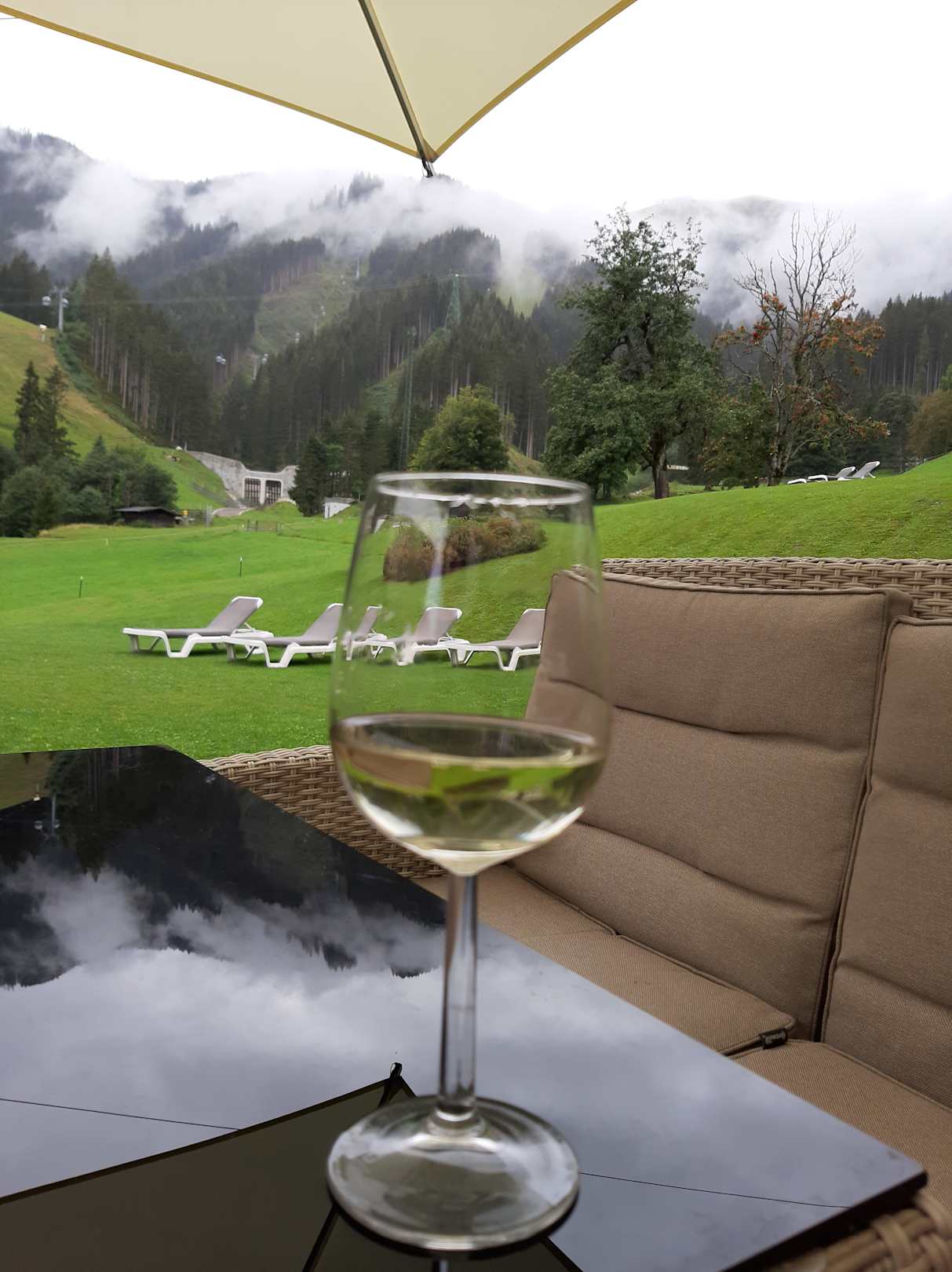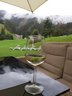 Bergblick von gemütlicher Terasse
