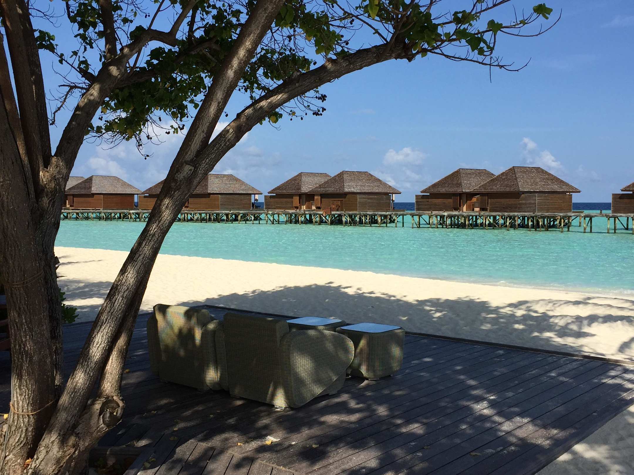 Blick auf die Wasservillen von der Bar