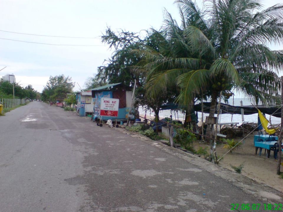 Hütten am StrandHier kann man sich günstig massieren lassen oder ein Stückchen weiter lecker essen gehen.