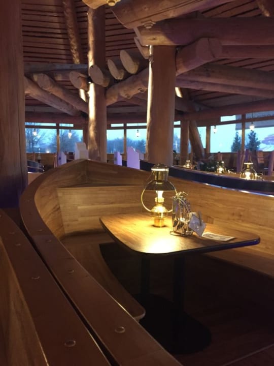 Gemütliche Boote zum Frühstück im Hafenrestaurant