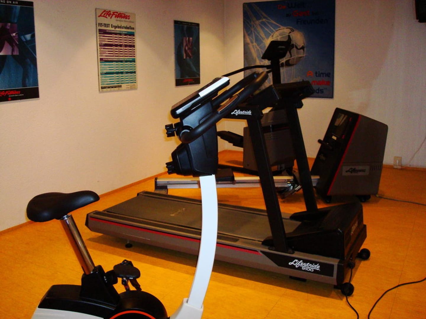 Fitnessraumhier gibt es einen Stepper, ein Rudergerät,ein Laufband und einen Hometrainer
