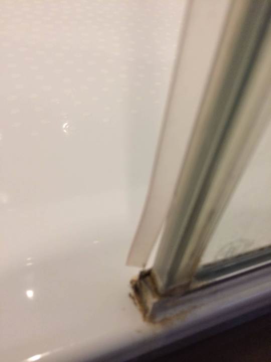 Dreckige Dusche mit defekter Dichtung