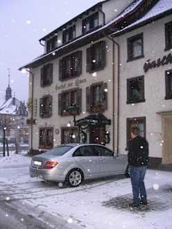 Hotel bei Schneefall im Januar '09