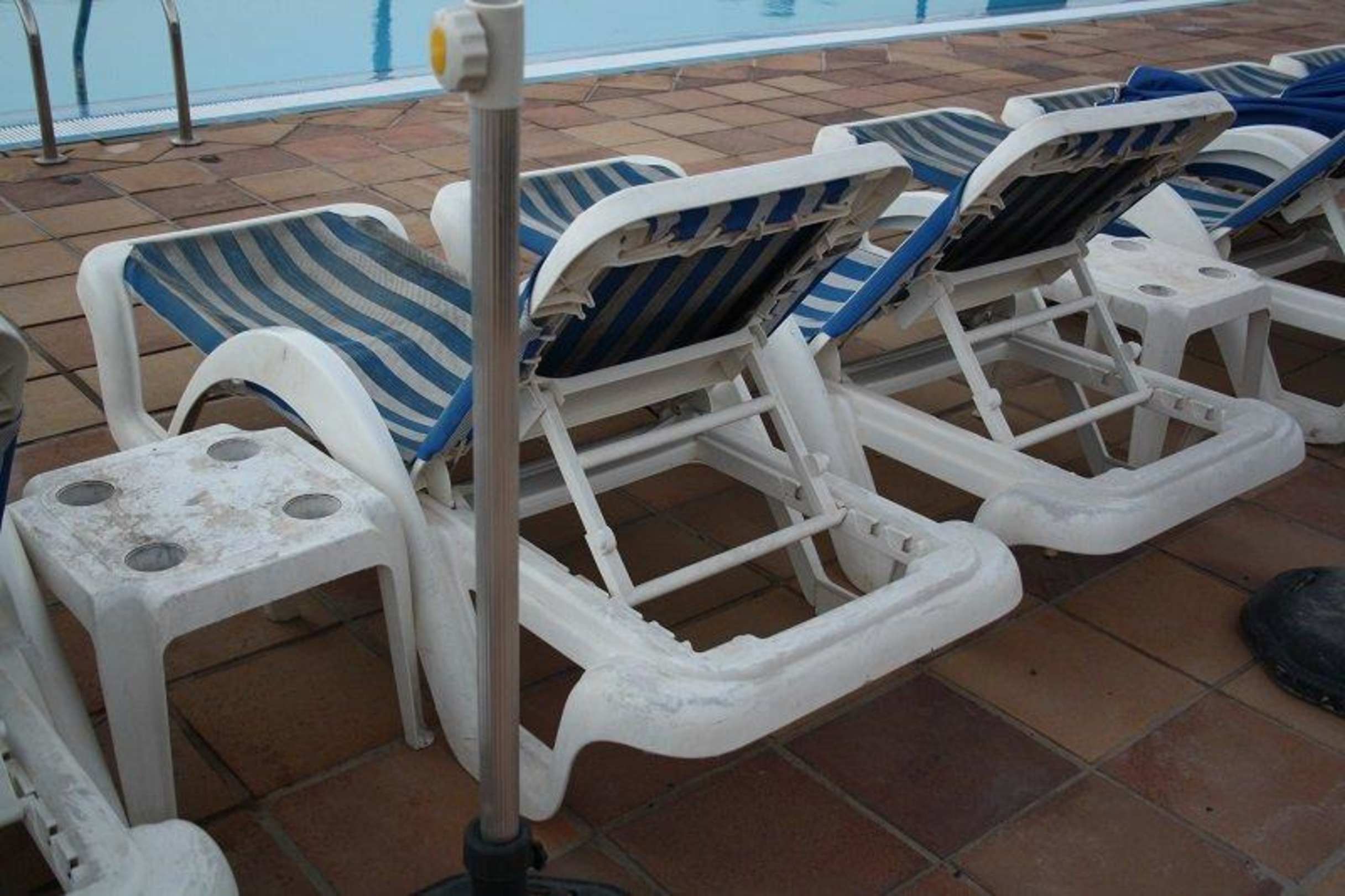 Dreckige Liegen und Tische