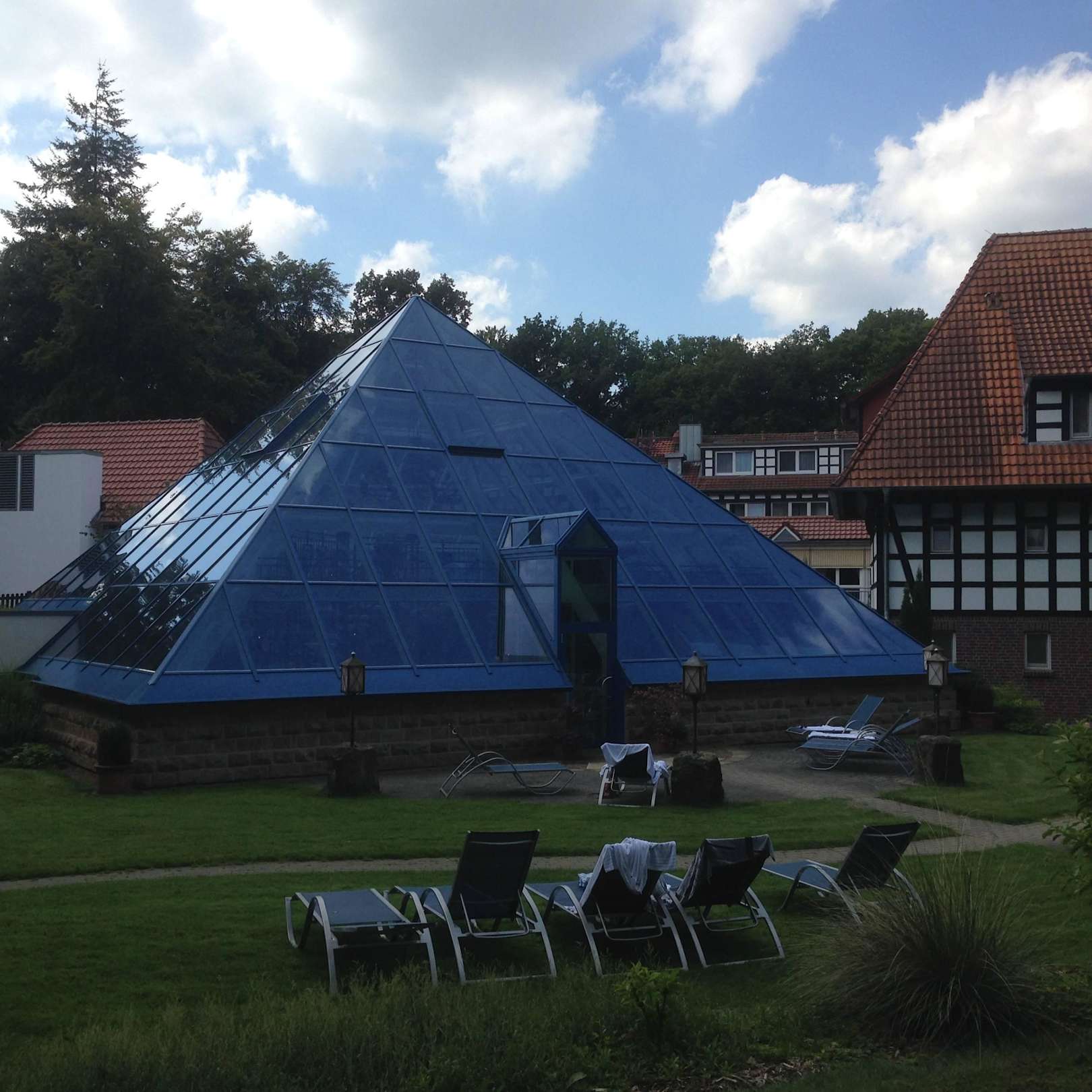 Garten mit Blick auf die Poolanlage