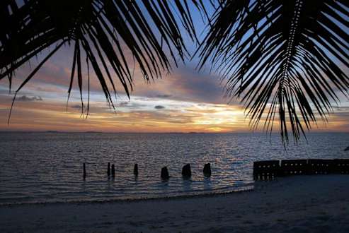 Zachód słońca poprzez liście palmowe