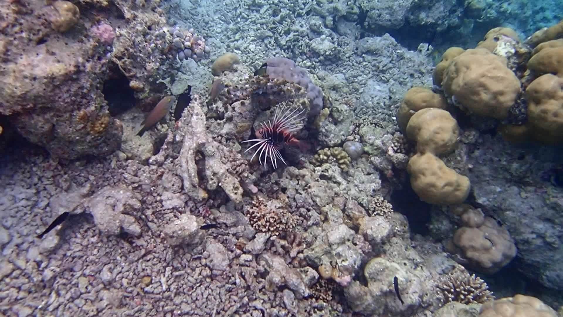 der Feuerfisch zeigt sich in voller Schönheit, er ist giftig