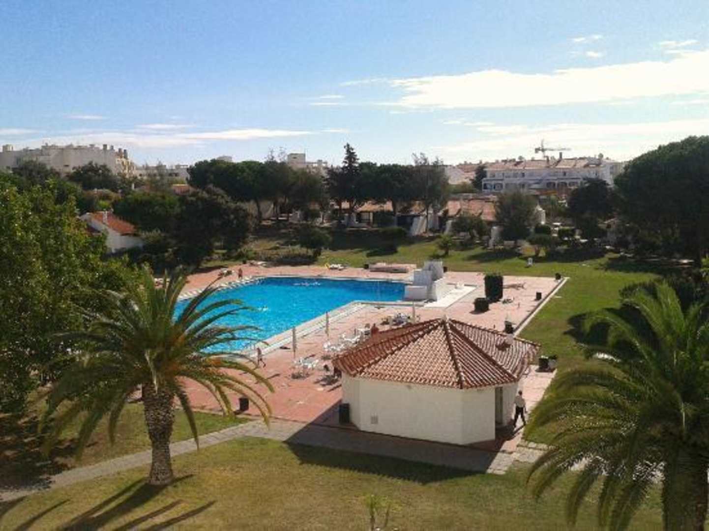 Aussicht vom Balkon in die Gartenanlage