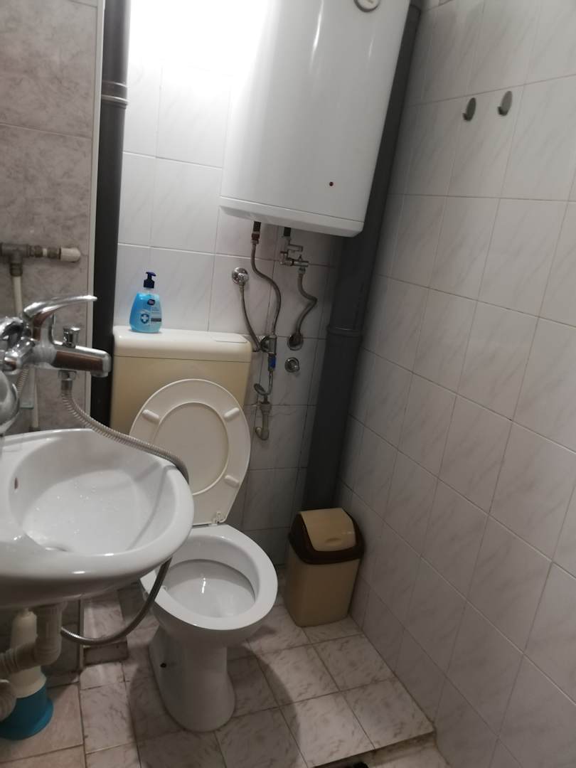 Bad Zimmer 1, keine Duschwanne, nur Duschschlauch mit Brausekopf