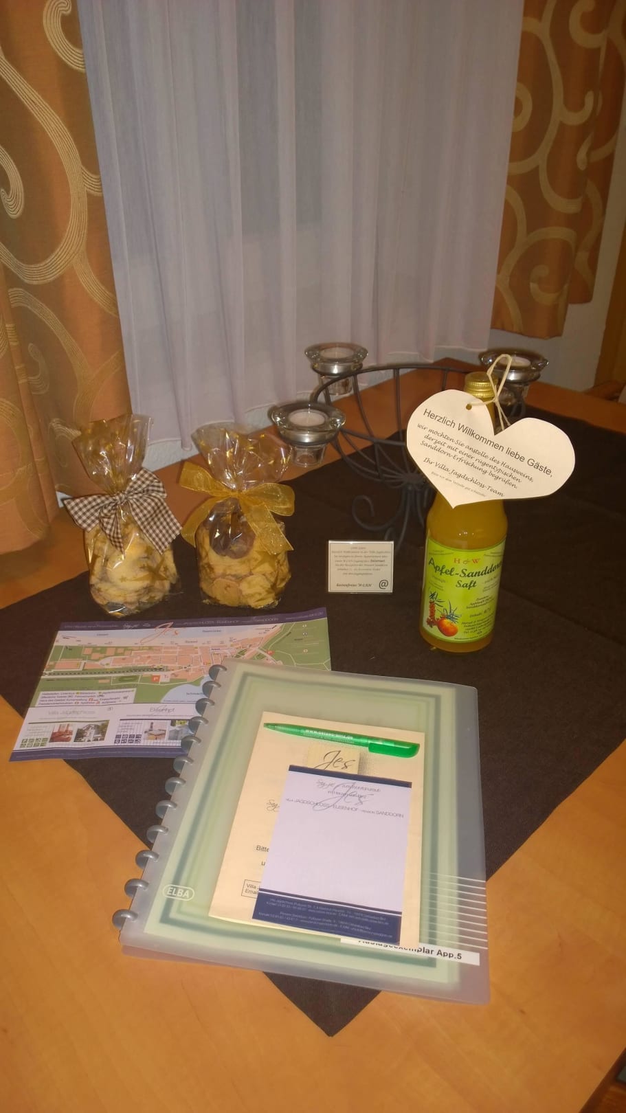 Der Eßbereich mit unseren Begrüßungsgeschenken