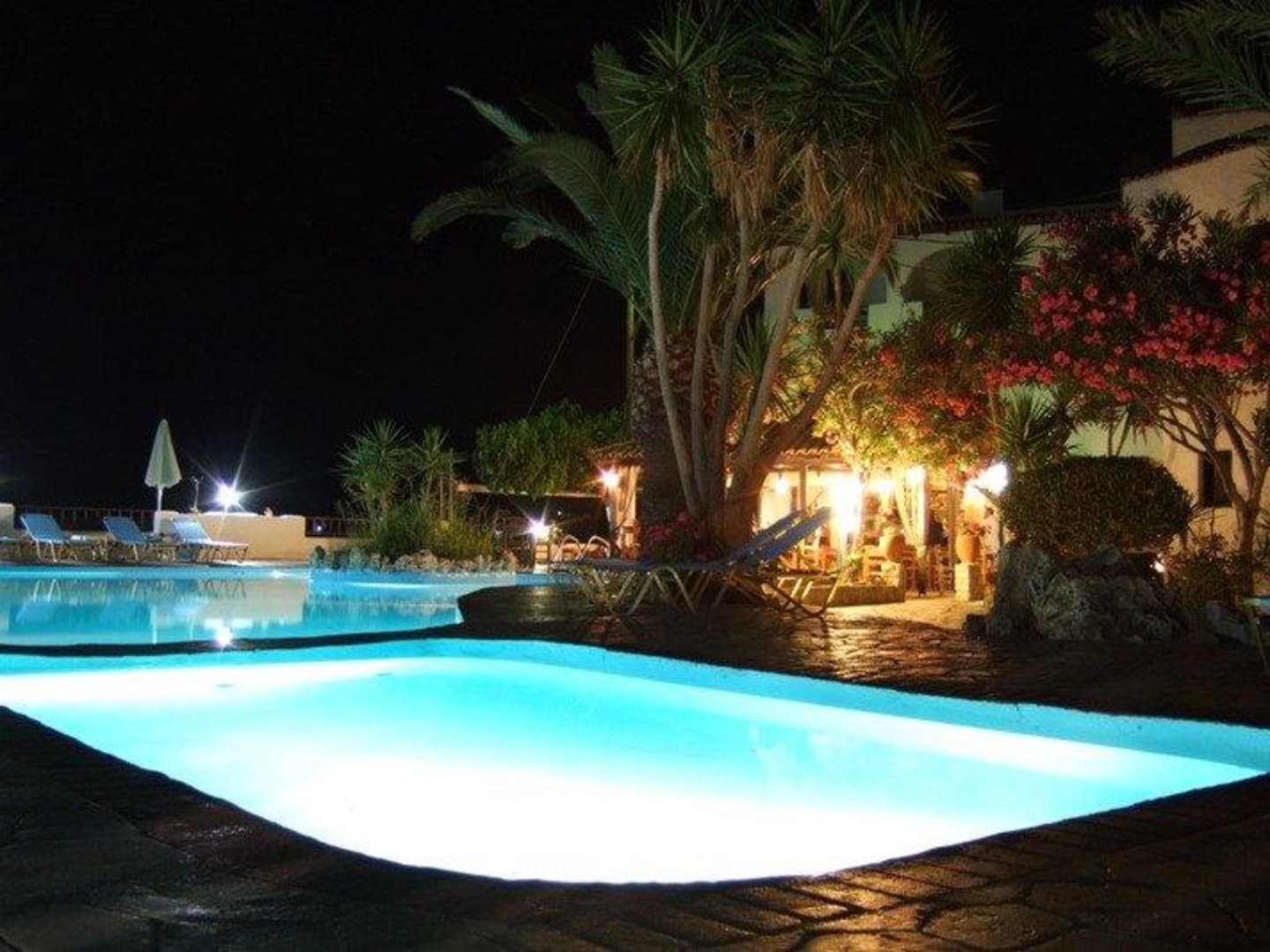 Blick auf Haupthaus und Taverne