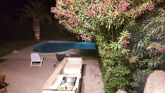 Pool, Liegen, Arbeitstisch hier kann man Grillen.