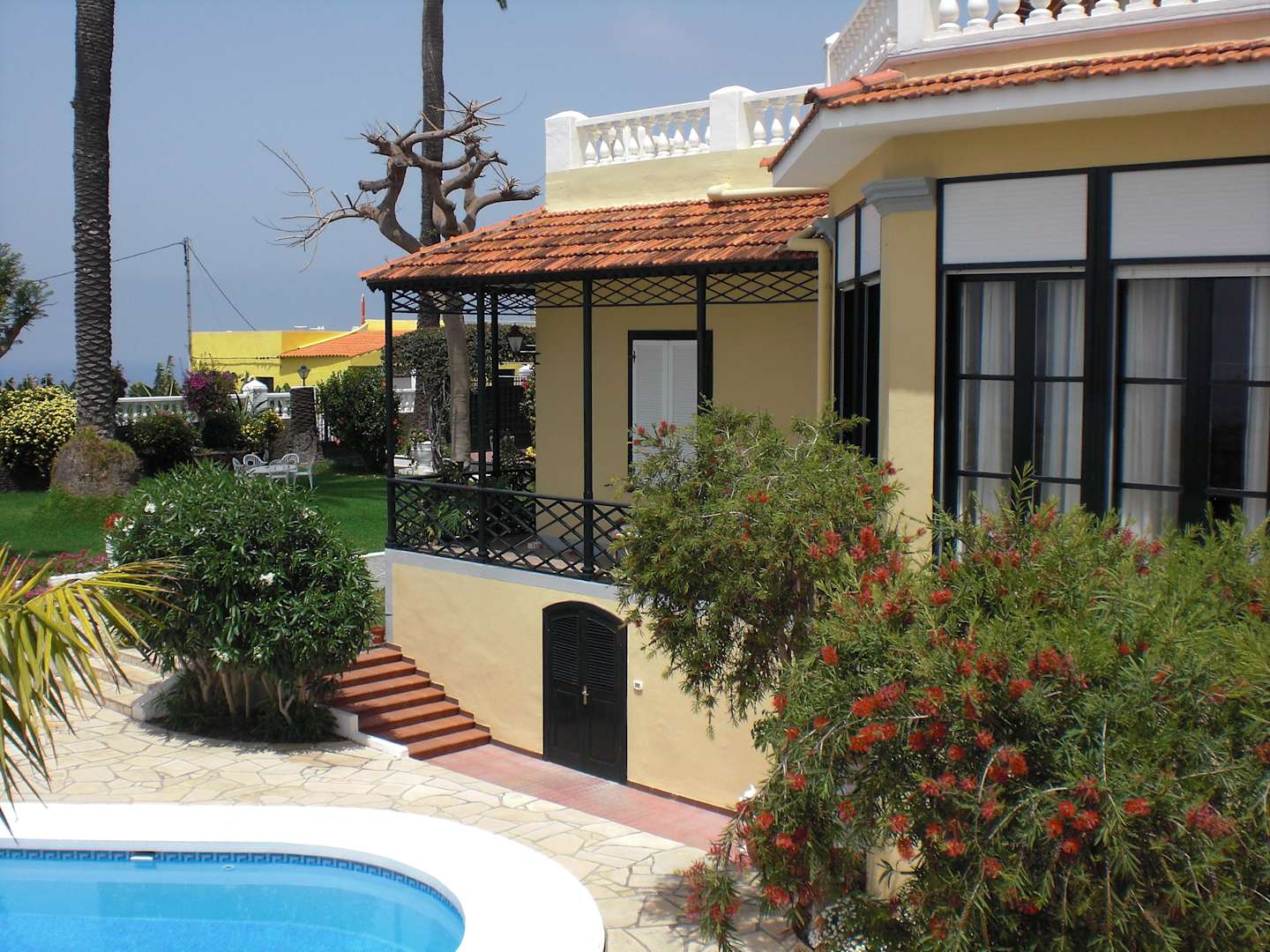 Blick auf das Haupthaus und den Pool