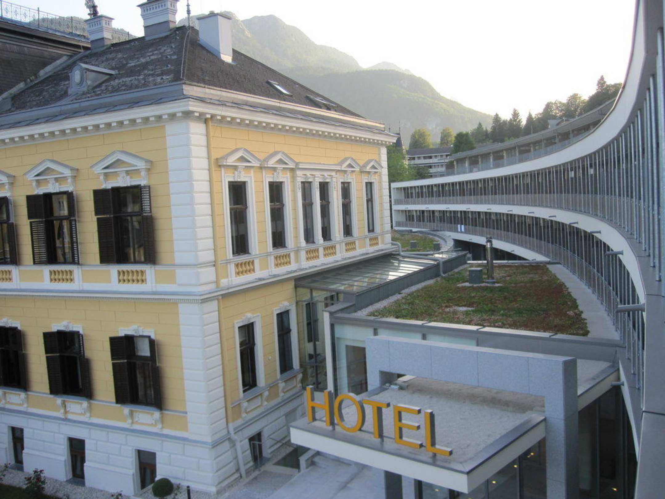 an das alte Gebäude ist der neue Trakt dran gebaut, Aussicht von unserem Balkon