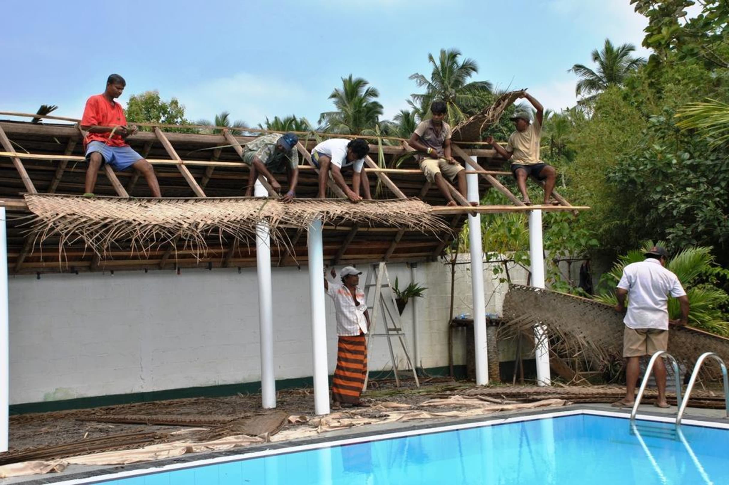 5 Stunden Arbeit und das neue Dach war fertig. Alles in mühsamer Handarbeit - bei uns nicht denkbar ....oder machbar in 5 Monaten......