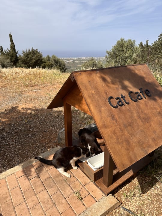 Die drei sehr gepflegten Hotelkatzen am Katzencafé