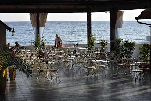 GastroHier konnte man die Abende verbringen, Aber die Aussicht war gut. Blechstühle statt Korbsessel immer mal was Neues
